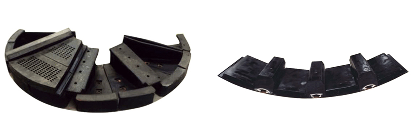 產(chǎn)品包括進料端襯板、筒體襯板、出料端格子板、各部位提升條、橡膠填料及配套的緊固螺栓等部件。